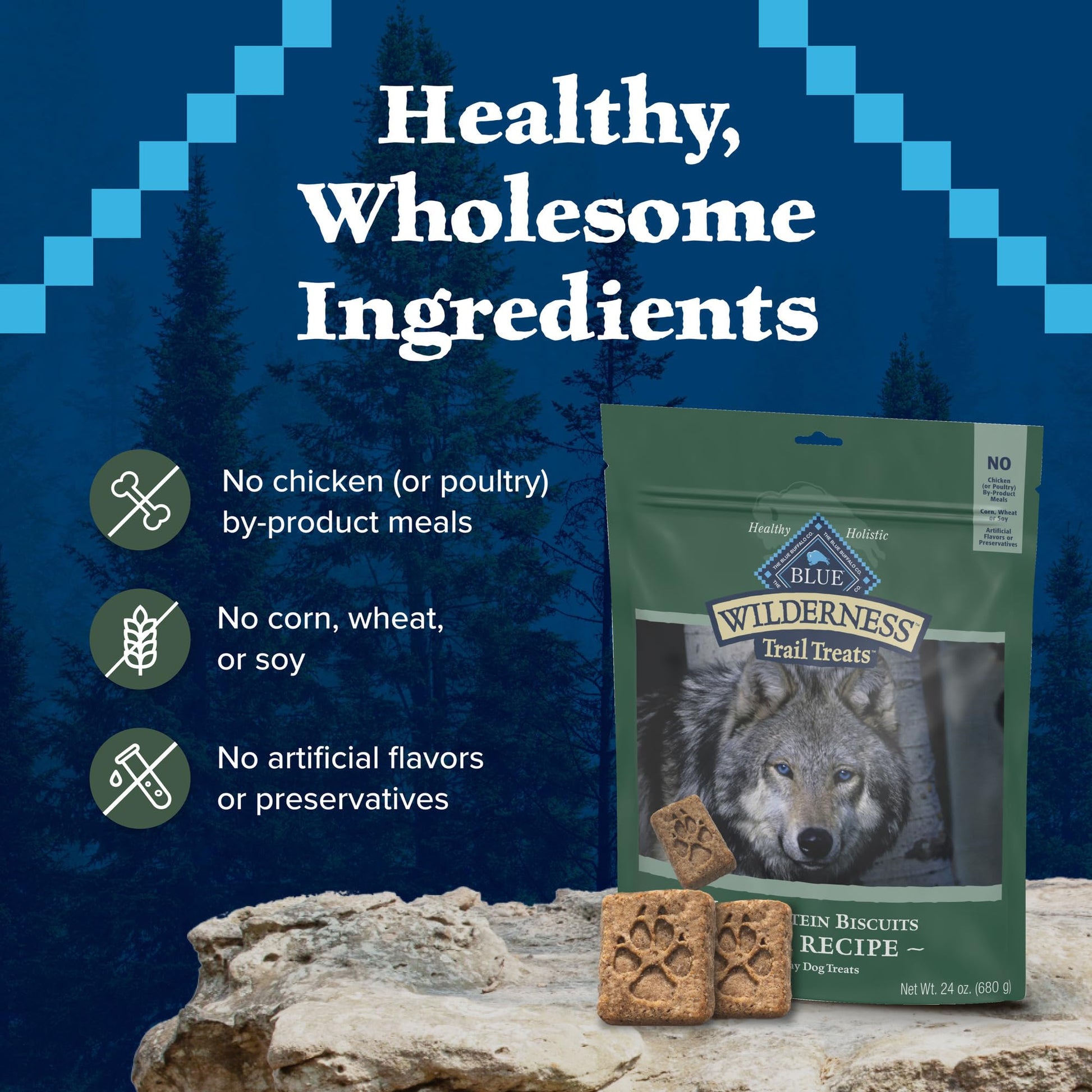 Blue Buffalo Wilderness Trail Treats High-Protein Crunchy Dog Biscuits – Duck Recipe, 24 oz